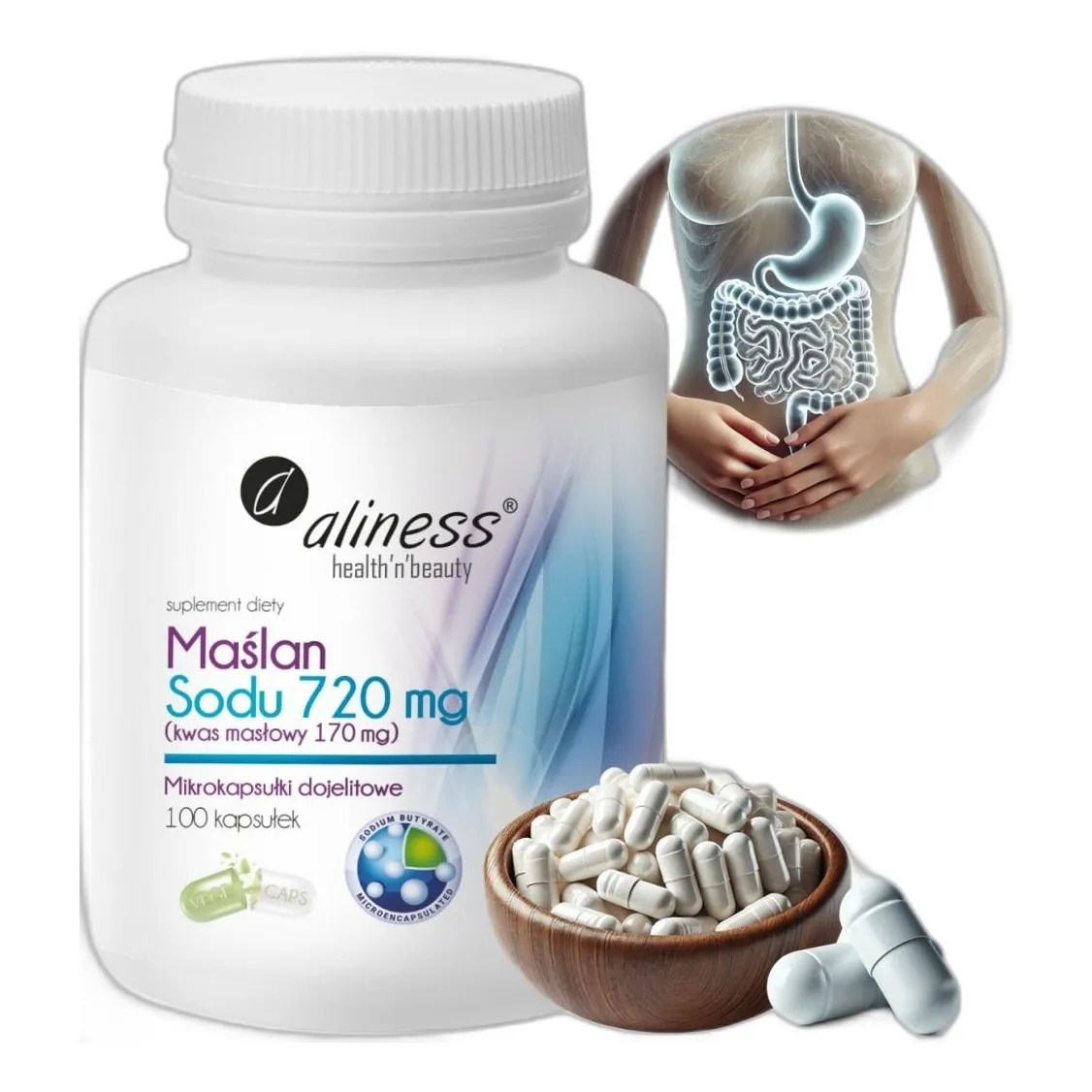 Suplement diety Aliness Maślan Sodu 720 mg 100 kapsułek